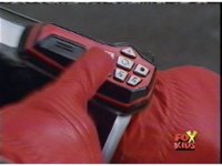 Red pulls out his control saber, flips it around as it transforms into a double for the Saber blaster thingy. |