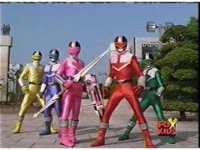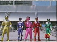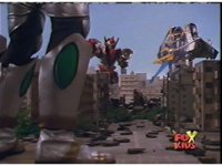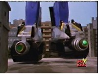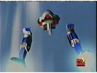 The five Time Flyers begin to form the Time Force Megazord in Mode Blue. |