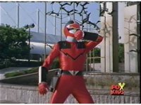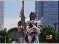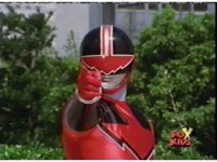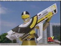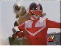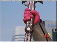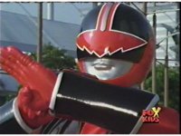 Red aims at his own Time Target clockface, as Shadow Force Mode Blue fires its Saber blaster forth. |