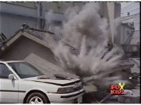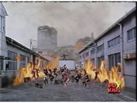 Severax and Cyclobots trash a burning alleyway, with the Mutant then firing his arm cannon. |