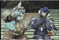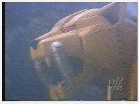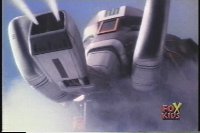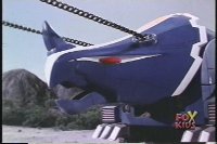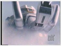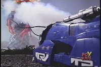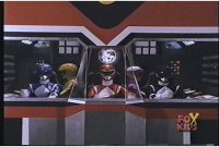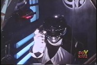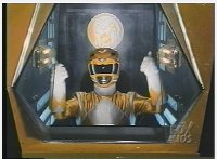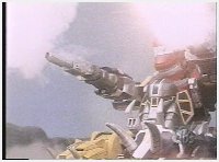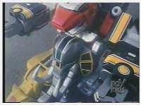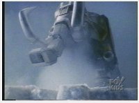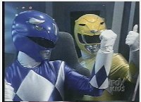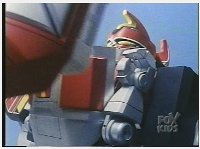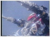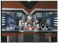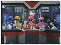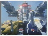 Close on Blue & Yellow in Megazord, lowering fists, then Blue talks to Red, before making another fist briefly, Yellow looking back and forth. |
