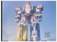 TRex head folds down, revealing Megazord head as Pterodactyl connects as chest plate. |