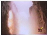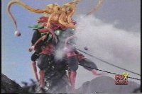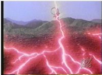 Bright sparkily blast flaring out screen, it fades near end to reveal King Sphinx & Goldar (shh!) |