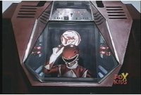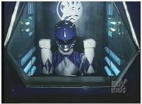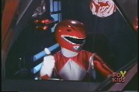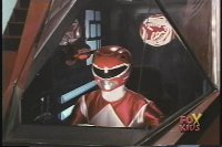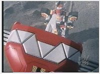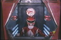 Zoom in on cockpit as Red Ranger raises fist up, then forth, then grips control . |