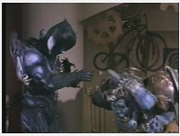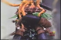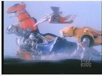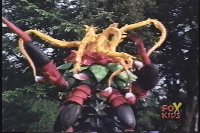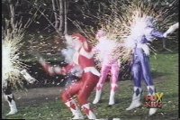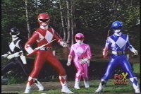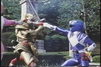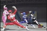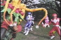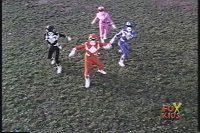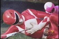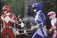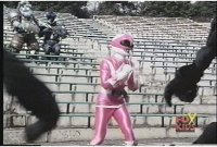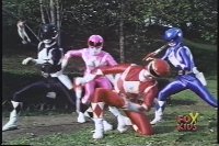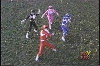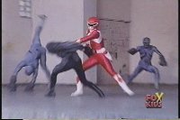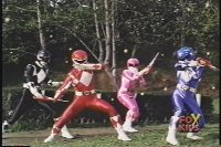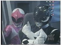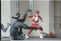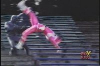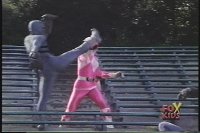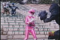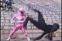 Continued from earlier, Pink Ranger footsweeps Extra-Chunky Putty off its feet as Squatt & Baboo watch. |