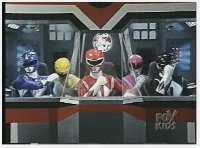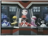 Rangers in cockpit appear to be happy at a successful hit against their enemy, Red pumping his fist, Black following suit, Blue snapping fingers then the fist thing, Pink clasping hands, and Yellow kinda shaking a bit. |