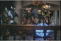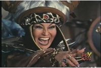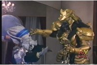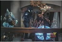 Finster and Goldar argue. Goldar stamps down his sword then pokes Finster in the forehead, he flails his arms in anger, leading to Goldar smacking him in the head. |