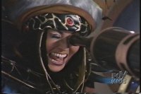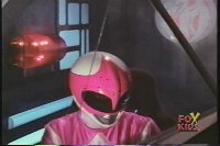 Close up on Pink Ranger's helmet as she turns around and looks. |