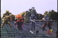 On hill, Black dives into Putty, taking him down. He gets up, blocks another Putty's attack, then hits him in the chest. |