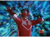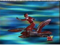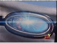 Zoom into the face of Red's Chrono-Morpher, where a time portal awaits, zoom out again and out pops his Chrono-Sabers. |