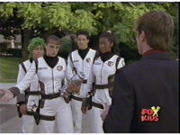 Frax and two Cyclobots teleport away, as the Rangers rush up, and talk just after he's gone. |