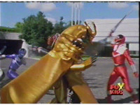 Cuts prior bits of three Rangers using V-Weapons on him. |