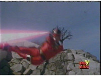 Frax shrugs off the Rangers, then fires mouthbeams at them, bursting them all down, where he then talks, closes his face, then Red sits up. |