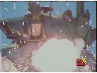 Cuts follow-up of Maxax with Cyclobots, as Japanese civilians flee. |