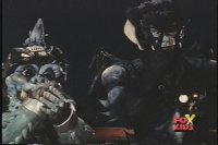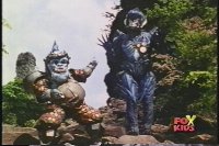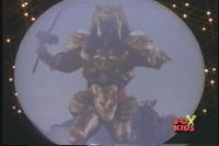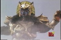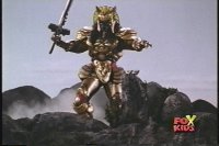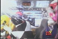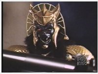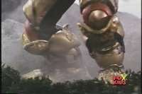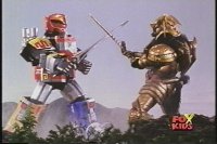 Goldar and Megazord switch sides, blades still locked, when Goldar suddenly vanishes. Megazord looks confused, as shot zooms in on its head. |