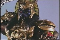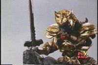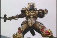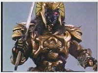 Chest up of US Goldar pointing sword to our left, then lowering it. |