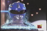 Billy looking upward as blue energy line morphs him into Blue Ranger. |