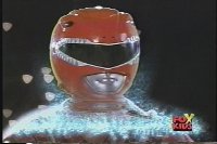 Jason looking upward as blue energy line morphs him into Red Ranger. |