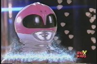 Kim looking upward as blue energy line morphs her into Pink Ranger. |