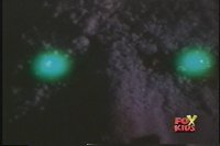 Close on Finster covering ears and bending over, while Baboo & Squatt freak out and start hugging in quaking fear as lights flash. |