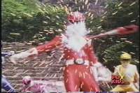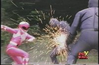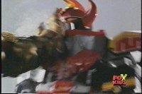 Megazord slashes Goldar sparkily in chest as he passes by, they then face again, locking swords, until Goldar slides blade, causing both of them to blasted. |