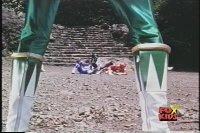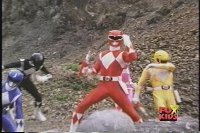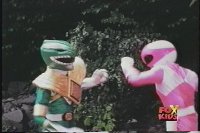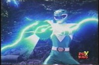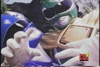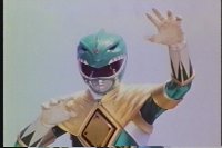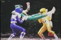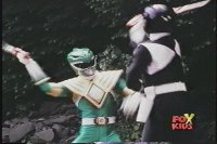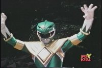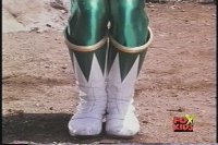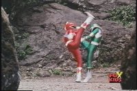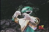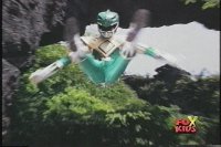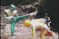 Green Ranger leaps up, spreads legs, thrusts crotch forth. |