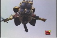 Goldar stays in the air, backflipping a few rotations, doing his best "Ash at the end of 'Evil Dead 2'" impression. |