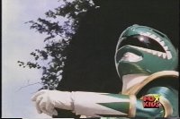 Sharp zoom in on Green Ranger, poses with arms posed, menacingly. |