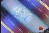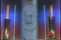 Zordon talks from right to our left, lowering head down. Angle tilted to our left, head image flashing in and out, with electrical veins added. |