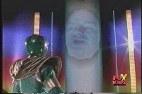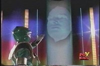 Zordon shakes head from left to right. Angle tilted to our right, head image flashing in and out, with electrical veins added. |