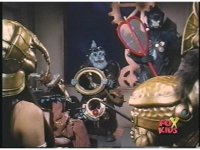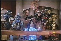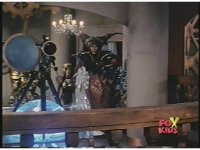 Rita steps away from Repulsascope, and Squatt & Baboo watch, as Goldar lowers sword to other hand and looks in 'scope. |
