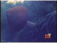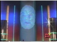 Zordon's head is vaguely visible amid blue static, talking to our left, turning his head to our right briefly, before becoming just static shape. |
