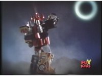 Megazord turns around and looks up at eclipsed sun, going blind and holding up right arm at it. |