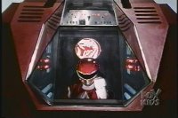 Alpha, back to console, looks to our left, as does Zordon, neither moving. Finally, Alpha moves arms and Zordon begins to talk. |