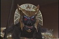 Close up of US Goldar talking and gesturing sword forth twice, then thrusting arms with sword up three times, followed by two. |