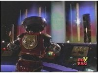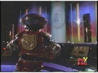 Continued, Alpha, back to console, looks to our left, moving arms. Zordon talks, then finally, Alpha says something while appearing happy. |