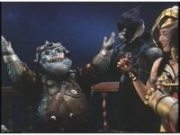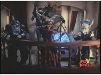 Camera zooms out from Rita's angry, screaming face on balcony as her henchmonsters appear upset by it. |