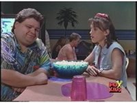 Plays on Juice Bar TV set in background of scene. Hard to make out, but that's point. |