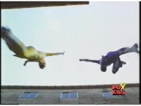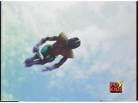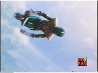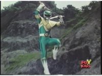 Green Ranger tucks in midair and flips over while passing over screen. |