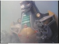 Rapid close pan up against Dragonzord's whole body, stopping above the head. |