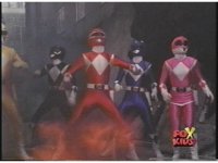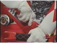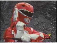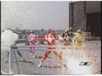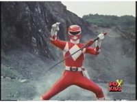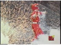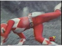 While the camera shakes and some mist passes in front of the screen, Red Ranger gestures fist. |