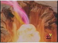 Green Ranger stabs Sword of Darkness into the ground, sending a wave of dirt erupting in a line at Red Ranger, causing him to spark burst when it reaches him. |