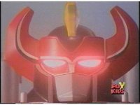 Close up of Dragonzord's face as red eyes flash under red visor. |