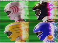 Turbine Org begins to recover, when the Rangers fire colored beams from their Sabers forth, the Wildzords spewing colored energy forth from their mouths, all of the colored energy streaming into the Org, knocking him off his feet and away from the dam, he slides on the ground and explodes massively, while the Rangers make celebratory gestures. |