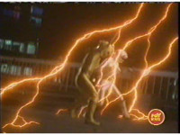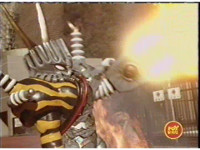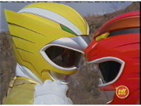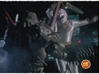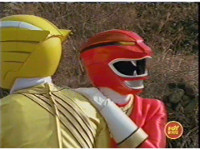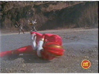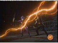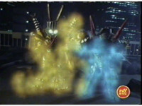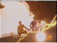 Plug Org & Turbine Org hold hands, then combine their powers, firing at the Rangers, exploding around them repeatedly. |