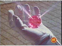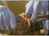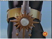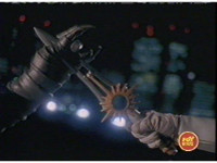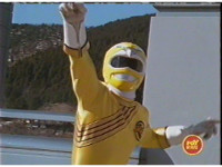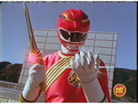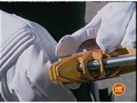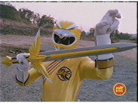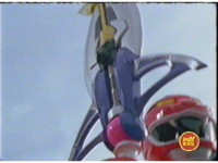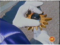 Turbine Org taunts the Rangers, when Red's Crystal Saber slot glows red, he notices, then his Animal Crystal materializes glowing in his other hand, he holds it up and it gleams, Yellow's Animal Crystal also appears and gleams. |