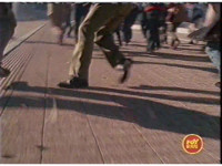 Trims start to remove two Japanese guys; shot 2 is textless unlike source; cuts follow-ups of citizens flipping over and hitting railing. |