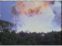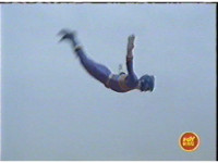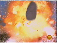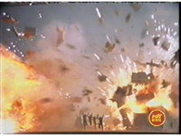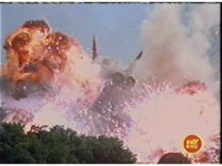 Cuts follow-up additional shot of him flipping over and the explosion bursting. |
