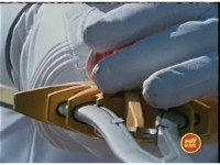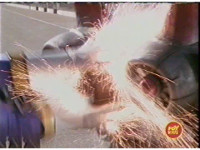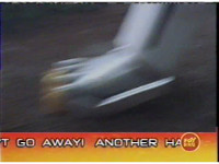 Last shot is a single artifact frame of a cut shot; cuts follow-ups of Yellow bouncing off rail and striking him again in the head. |