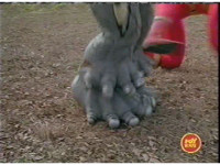 Red charges at Plug Org on all fours, then kicks out his legs from under him as he passes, knocking the Org over, as Red then stands up. |